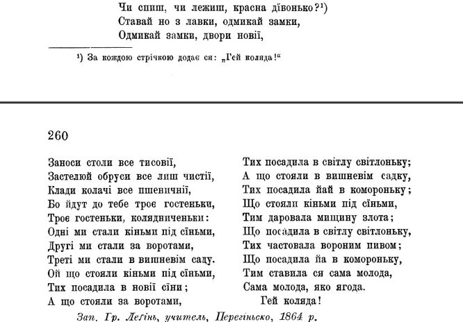 Григорій Леґінь зібрав колядки в Перегинску, Долинського пов. 1864р.;