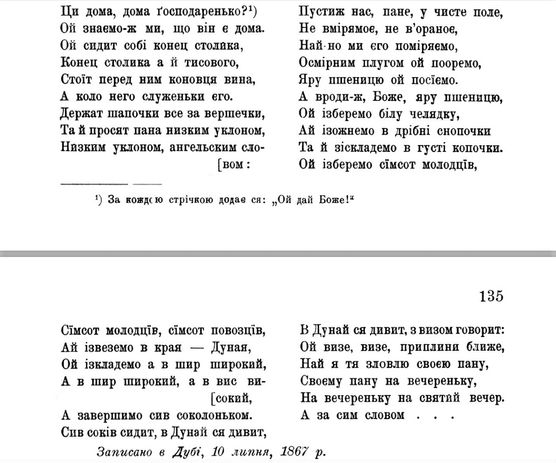 та колядки з Дуби, Долинського повіту невідомого записувача 1867 роком.